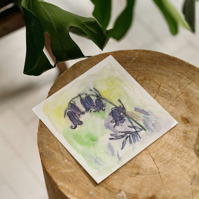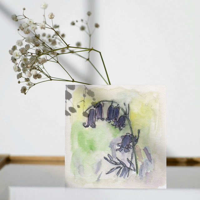 This greeting card features my watercolour painting of bluebell flowers. It has no message and is blank inside so can be used for a variety of occasions.