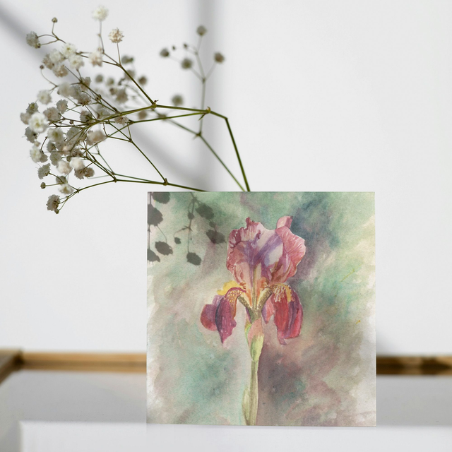 This greeting card features my watercolour painting of a beautiful iris. It has no message and is blank inside so can be used for a variety of occasions.
