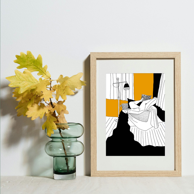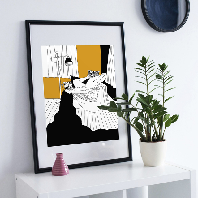 This print features my graphic illustration of a female nude with flowing hair. It forms part of a series of feminist prints which embrace body positivity and the female form.