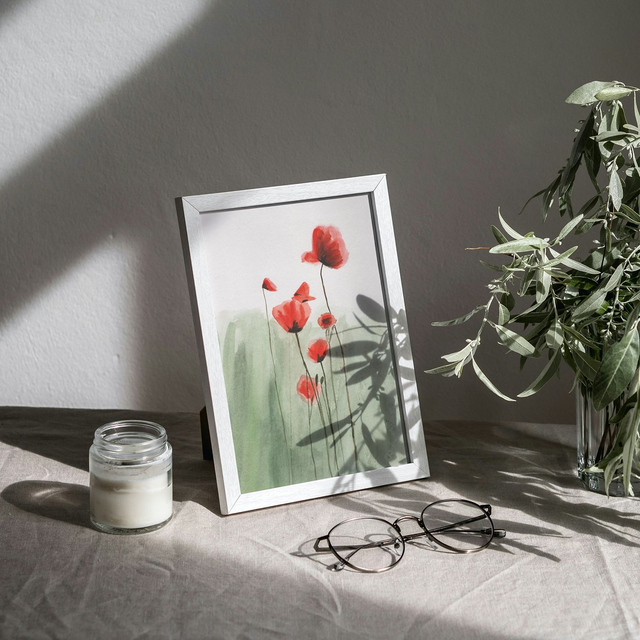 The print is A4 size (approx 210 x 297mm) and is professionally printed on 250gsm paperweight matte finish card. It is backed with recycled cardboard and packaged in a cellophane bag for protection.