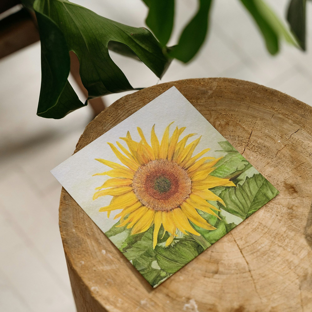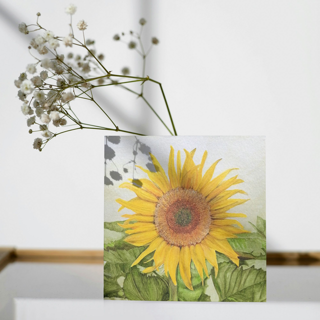 This greeting card features my acrylic painting of a sunflower in bloom. It has no message and is blank inside so can be used for a variety of occasions.