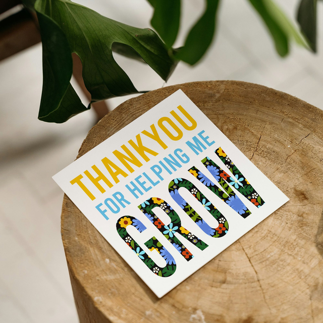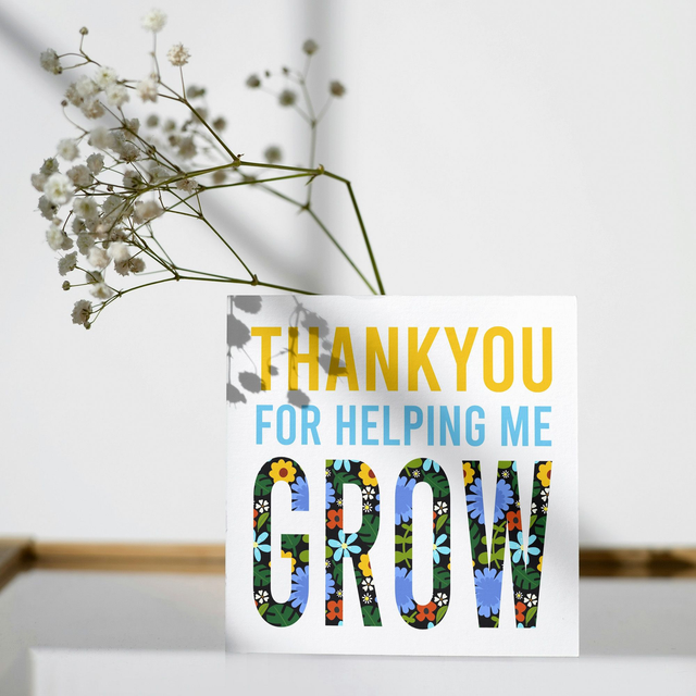This greeting card features my floral text illustration with the message 'Thank You For Helping Me Grow'.